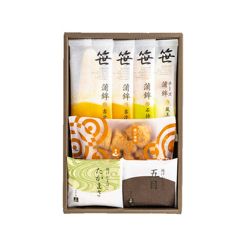 ●商品内容/笹かまぼこ(吉次2枚・石持1枚)、チーズ笹かまぼこ蔵王1枚、揚げかまぼこ(たかまさ・五目 各1枚)、ぷちあげたまねぎ8個