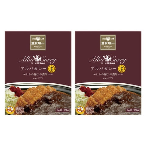 金沢発祥のアルバカレー。千切りキャベツとカツをトッピングしてお店の味をお楽しみください。電子レンジ対応パウチです。