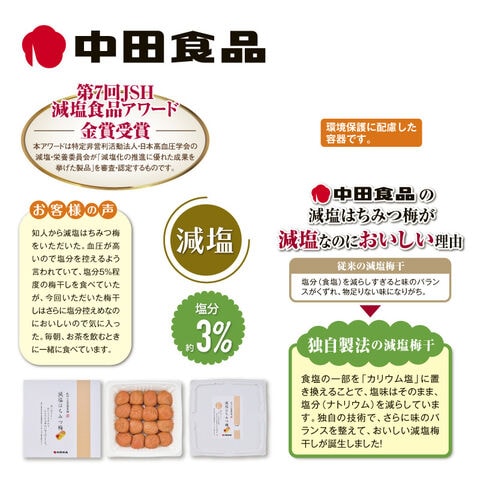 中田食品 紀州の完熟南高梅 減塩はちみつ梅 送料込み