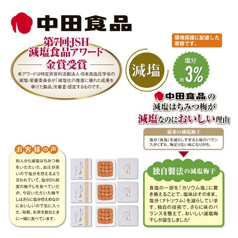 ※梅干し調味漬(日本食品標準成分表2020)に比べ塩分を50%カットしています。