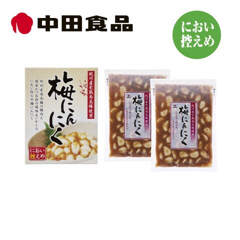 シャキッとした歯ざわりのにんにくを紀州産完熟南高梅と国産かつお節で、旨味と酸味を程よくきかせて漬け込みました。