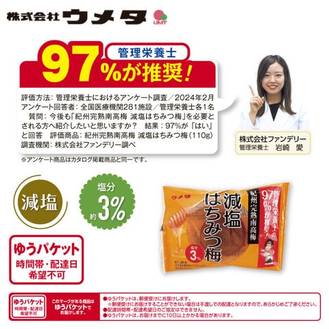 ウメタ 紀州南高梅減塩約3%はちみつ梅干個包装5粒 送料込み
