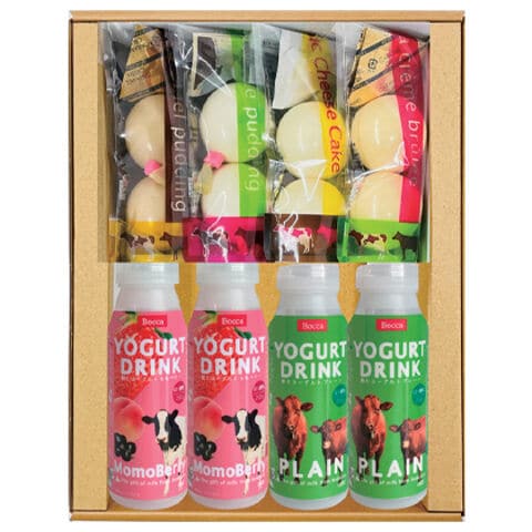 ●商品内容/白いプリン75g・カラメルソース5g 各2、クレームブリュレ75g・カラメルクラッシュ2g 各2、塩キャラメルプリン75g・カラメルクラッシュ2g 各2、クラシックチーズケーキ75g・ココアコーヒークラッシュ2g 各2、飲むヨーグルトプレーン・飲むヨーグルトももベリー 各200g×2