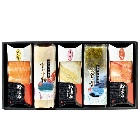 ●商品内容/鮨懐石かまぼこ(香り箱・きす・えび 各1本)、かに小袖・能登の香 各1本