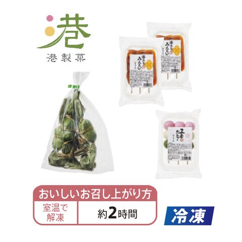 コシのある団子生地が特徴のみたらし串団子と三色団子に、自家製の粒あんをよもぎ入りのお団子で包んだ笹団子をセットしました。お好きな分だけ解凍し、お召し上がりください。【商品提供者コメント】