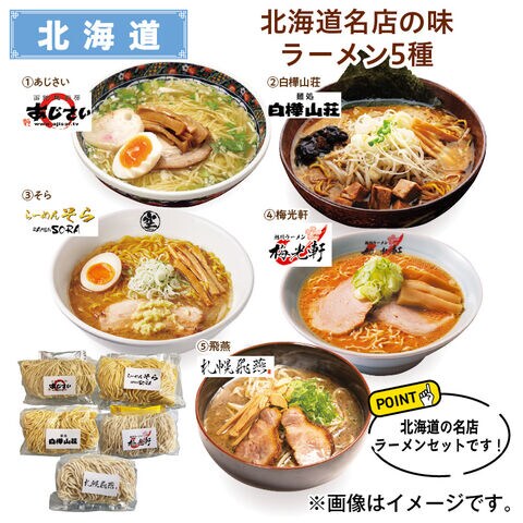 北海道・新千歳空港内「ラーメン道場」に出店中のラーメン店5店舗の味が楽しめるセットです。【商品提供者コメント】