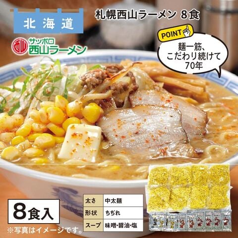 ●商品内容/生めん120g×8、スープ(みそ味61g×4、しょうゆ味・しお味 各47g×2