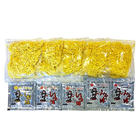●商品内容/生めん120g×5、スープ(みそ味61g・しょうゆ味47g 各2、しお味47g)