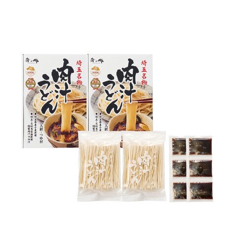 温かいつゆに冷たいめんをつけていただく埼玉名物・肉汁うどん。滑らかでモチモチとした食感の乾麺に、肉の旨みを加えた特製つゆ付です。【商品提供者コメント】