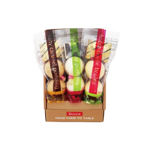 ●商品内容/白いプリン(プリン75g×2、ソース付)、クレームブリュレ・塩キャラメルプリン 各(プリン75g×2、カラメルクラッシュ付)