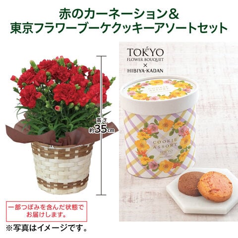 母の日 赤のカーネーション+東京フラワーブーケクッキーアソートセット 送料込み