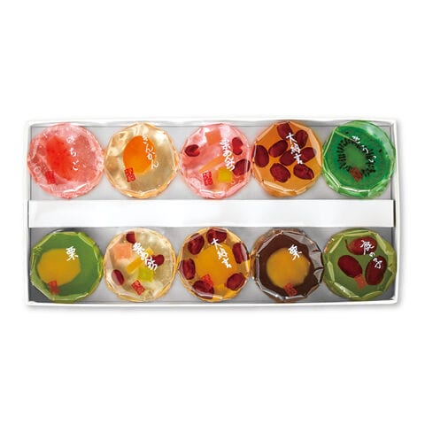 ●商品内容/大納言羊羹・大納言栗ゼリー・栗羊羹小倉・栗羊羹抹茶・鹿の子金時豆・栗あんみつ紅・栗あんみつ白・きんかん・きうい・いちご 各1個