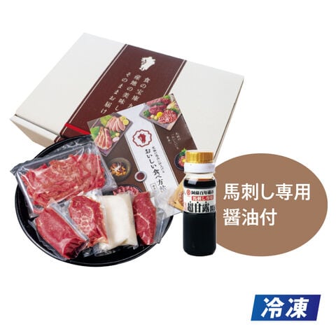 ●商品内容/上赤身・中トロ・ロース・ユッケ 各50g、たてがみ30g、ユッケたれ12g、馬刺し専用醤油80ml
