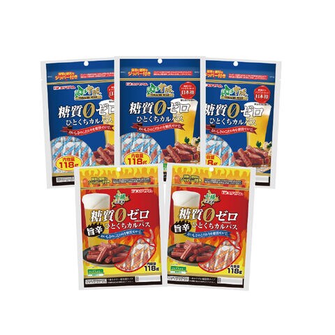 ●商品内容/ひとくちカルパス118g×3、旨辛ひとくちカルパス118g×2