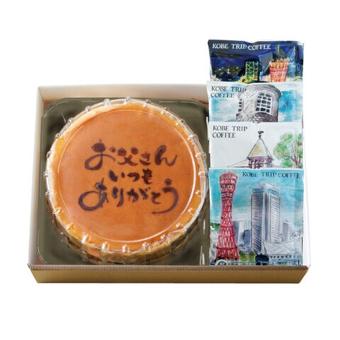 「兵庫県の牛乳」を使用した焼印入りチーズケーキと神戸珈琲ドリップの父の日オリジナルセットです。【商品提供者コメント】