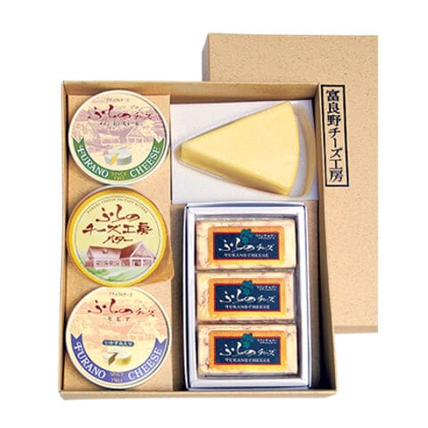 ●商品内容/メゾン ドゥ ピェール100g、セピア100g、ワインチェダー120g(40g×3)、ホワイト125g、ふらのチーズ工房バター70g