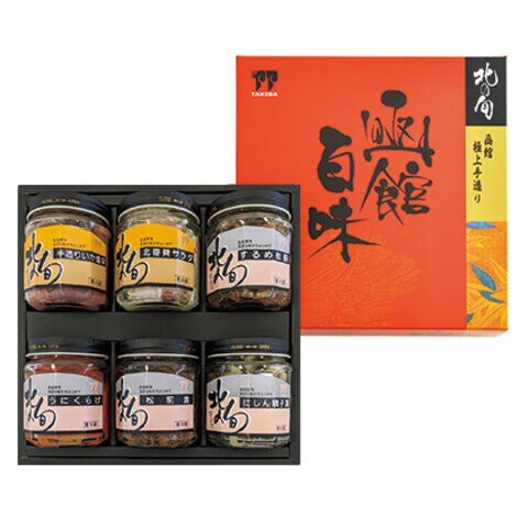 ●商品内容/手造りいか塩辛・北寄貝サラダ・松前漬・うにくらげ・にしん親子漬・するめ松前 各140g