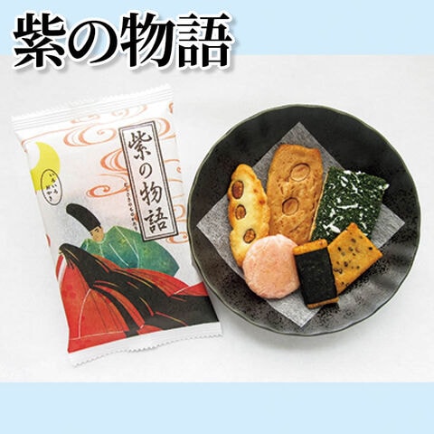 国産もち米使用。「源氏物語」を題材とした六つのおかきの詰合せです。【商品提供者コメント】