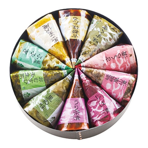 ●商品内容/味すぐき・嵯峨ふぶき・里の味・さくら漬・黒ごま沢庵・嵯峨嵐山漬・古都ほたる・嵯峨しば漬・おむすびみぶ菜・うり茶漬 各40g