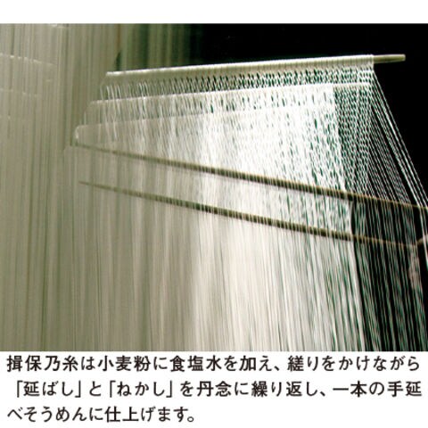 揖保乃糸の「ひね」とは、製造後1年以上熟成専用倉庫で寝かせて熟成させたもので、麺の中でも美味しいと伝承されています。【商品提供者コメント】