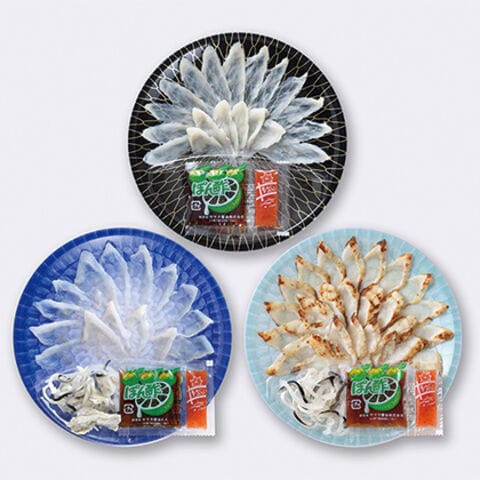 ●商品内容/(とらふく刺身20g、とらふく皮湯引き10g、ぽん酢14g、もみじおろし3g)(19cmプラスチック皿)、(まふく刺身30g、ぽん酢14g、もみじおろし3g)(19cmプラスチック皿)、(まふくたたき刺身30g、とらふく皮湯引き10g、ぽん酢14g、もみじおろし3g)(19cmプラスチック皿)