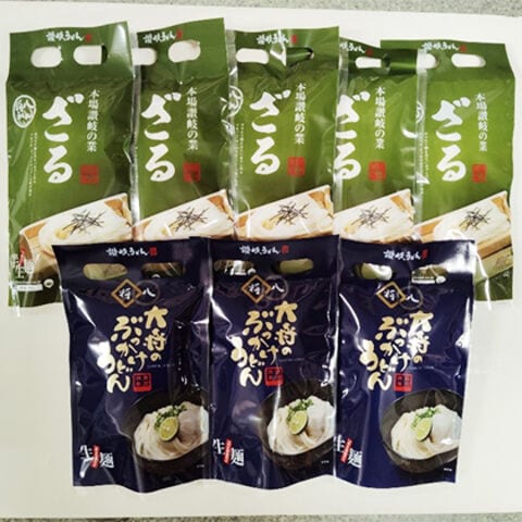 ●商品内容/ざるうどん(半生めん220g、つゆ60g×2)×5、ぶっかけうどん(生めん220g、つゆ50g×2、すだち果汁3ml)×3