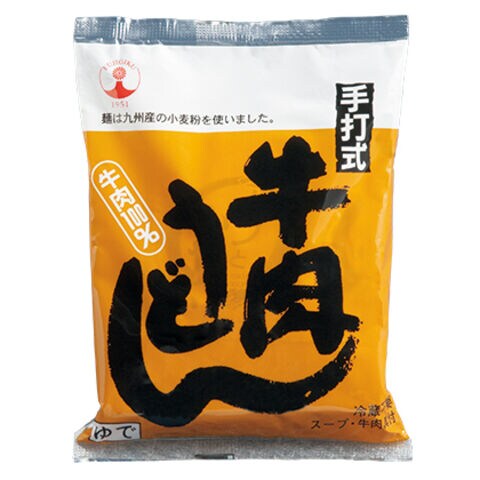 手打式製法によるソフトなもちもち麺。甘辛牛肉レトルトとスープです。【商品提供者コメント】