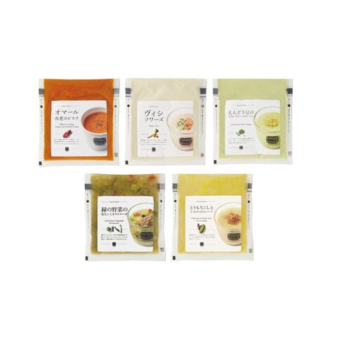 暑い季節におすすめの冷たいスープ4個と人気の「オマール海老のビスク」を詰合せました。【商品提供者コメント】