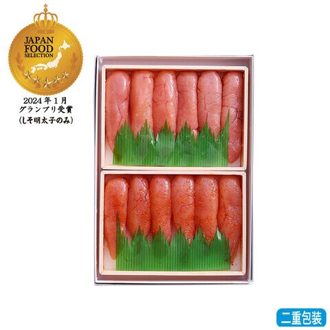 最高評価グランプリ受賞のしそ明太子と無着色たらこが入ったイチオシの贈り物。美味しさの秘密は120時間かける手間と時間です【商品提供者コメント】