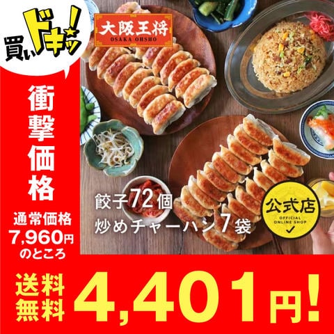 【単品合計9,380円のところ⇒5,980円】大阪王将 餃子&チャーハン中華定食セット(餃子72個&チャーハン7袋 計7人前)<北海道・沖縄は別途追加送料> 餃子 チャーハン ごはん 米 お米 冷凍食品 冷凍餃子 ギフト 中華 【大阪王将CP】