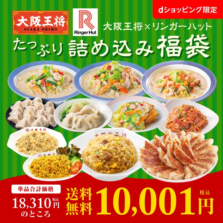 【単品合計18,310円のところ⇒10,001円!】dショッピング限定!大阪王将×リンガーハット たっぷり詰め込み福袋 <北海道・沖縄は別途追加送料>お取り寄せグルメ 中華 ギフト 仕送り お歳暮 餃子 チャーハン 【大阪王将CP】