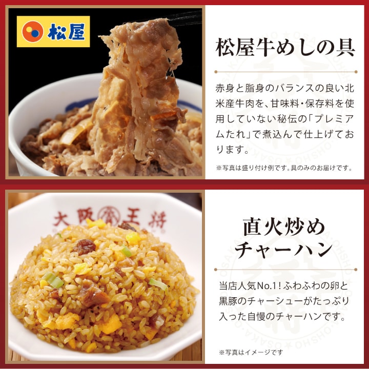 【単品合計8,930円のところ⇒6,001円!】≪松屋×大阪王将≫牛めし&炒飯&カレー&詰め合わせセット <北海道・沖縄は別途追加送料>送料無料 冷凍食品 通販 お取り寄せ 中華 仕送り レンチン 簡単調理 備蓄 簡単 惣菜 ギフト 牛丼 どんぶり