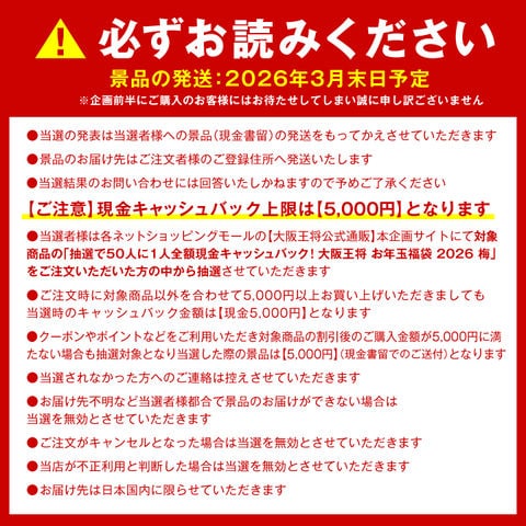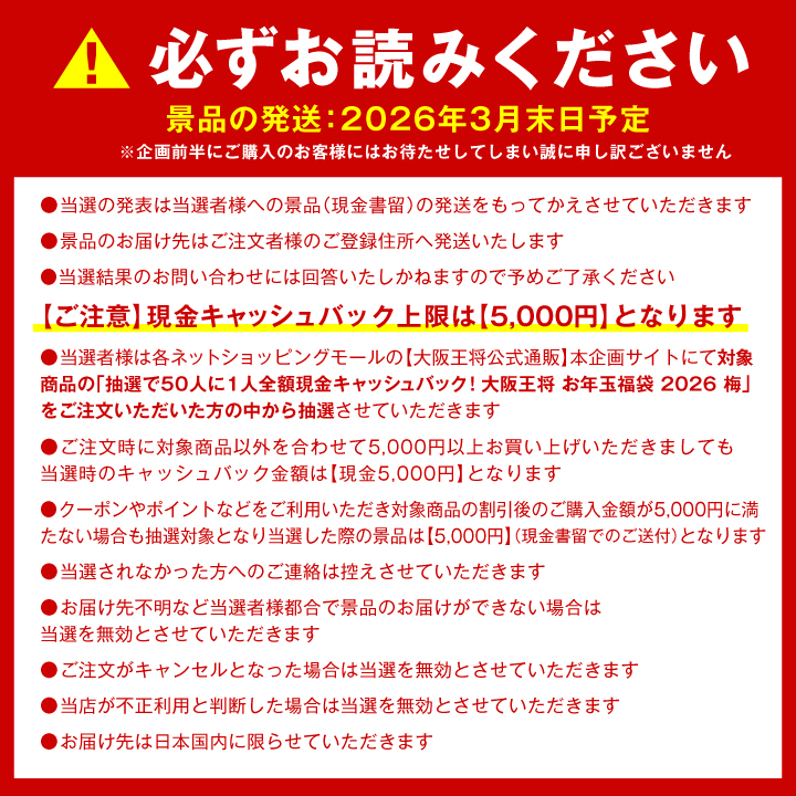 【単品合計8,160円のところ⇒5,000円】抽選で50人に1人全額現金キャッシュバック!大阪王将 お年玉福袋 2026 梅<北海道・沖縄は別途追加送料>送料無料 冷凍食品 通販 お取り寄せ 中華 レンチン 簡単調理 備蓄 チャーハン ごはん 米 冷凍餃子 当たる 抽選 現金還元