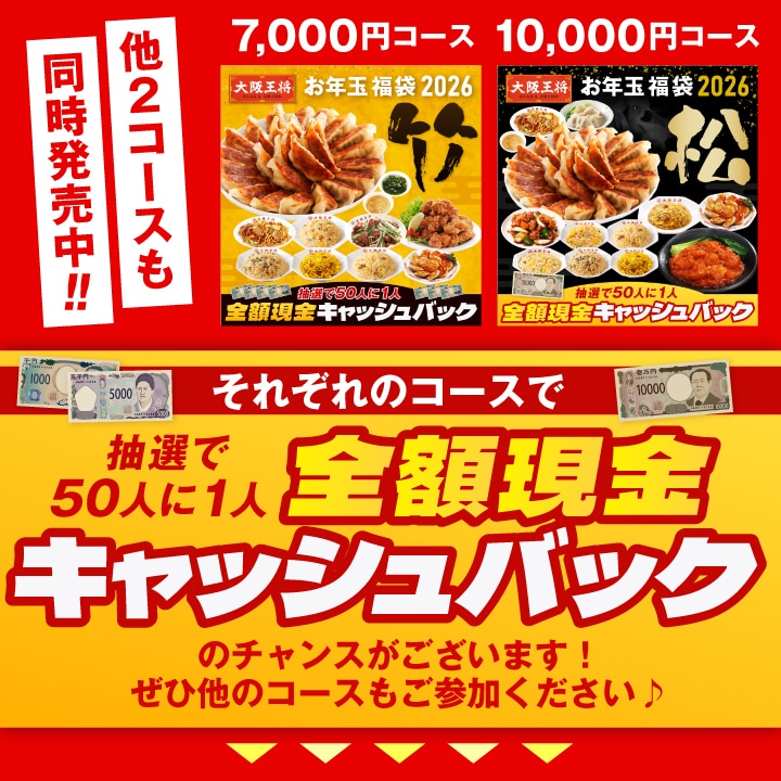 【単品合計8,160円のところ⇒5,000円】抽選で50人に1人全額現金キャッシュバック!大阪王将 お年玉福袋 2026 梅<北海道・沖縄は別途追加送料>送料無料 冷凍食品 通販 お取り寄せ 中華 レンチン 簡単調理 備蓄 チャーハン ごはん 米 冷凍餃子 当たる 抽選 現金還元