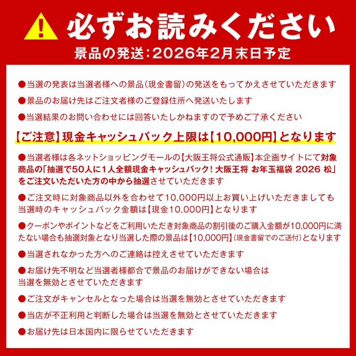 【単品合計17,390円のところ⇒10,000円】抽選で50人に1人全額現金キャッシュバック!大阪王将 お年玉福袋 2026 松<北海道・沖縄は別途追加送料>送料無料 冷凍食品 通販 お取り寄せ 中華 レンチン 簡単調理 備蓄 チャーハン ごはん 米 冷凍餃子 当たる 抽選 現金還元