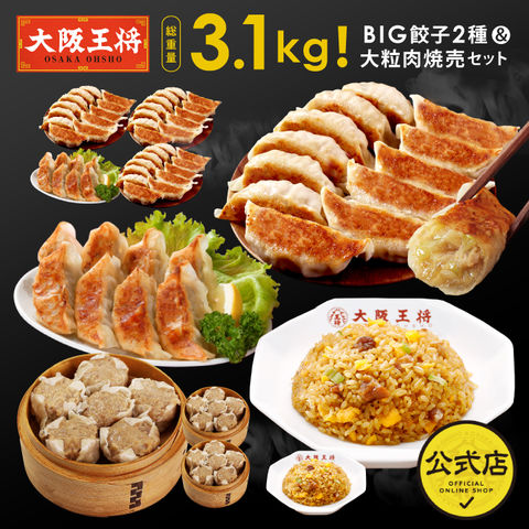 【単品合計10,342円のところ⇒5,980円】大阪王将 総重量3.4kg!BIG餃子2種&大粒肉焼売セット(炒飯2袋入り)<北海道・沖縄は別途追加送料>送料無料 冷凍食品 通販 お取り寄せ 中華 仕送り レンチン 備蓄 簡単 惣菜 ギフト チャーハン ごはん 米 お米 冷凍餃子 【大阪王将CP】