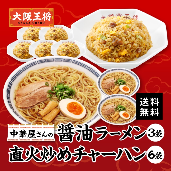 【単品合計6,480円のところ⇒4,001円】中華屋さんの醤油ラーメン3袋&直火炒めチャーハン6袋セット<北海道・沖縄は別途追加送料>送料無料 冷凍食品 通販 チャーハン 炒飯 ごはん 米 お米 お取り寄せ 中華 大容量 まとめ買い 仕送り レンチン 簡単調理 備蓄