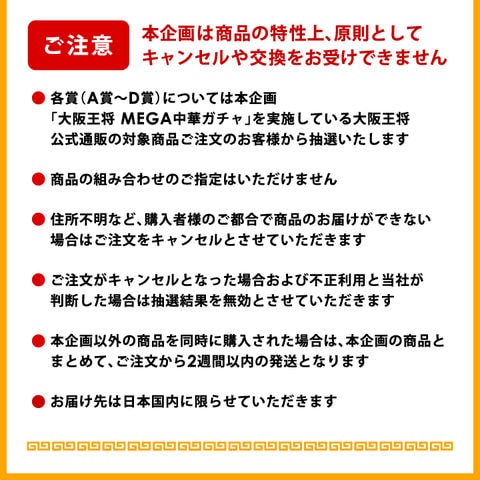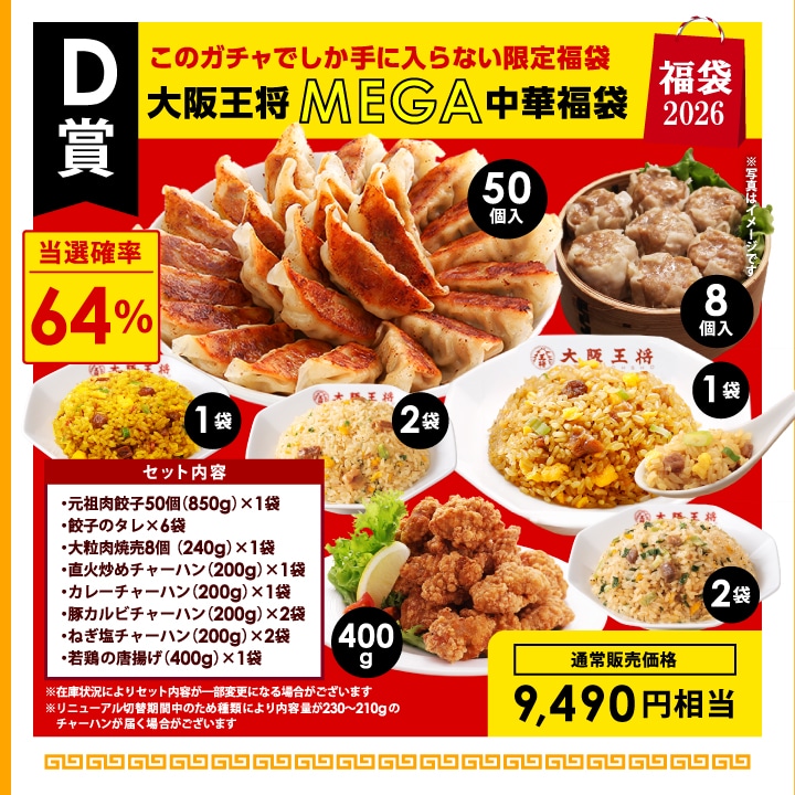 【最大87,500円相当のうなぎや海老チリなど豪華惣菜や特盛中華が当たる!?】大阪王将 MEGA中華ガチャ2026<北海道・沖縄は別途追加送料> 餃子 チャーハン お取り寄せ 冷凍食品 冷凍餃子 ギフト 中華 惣菜 福袋