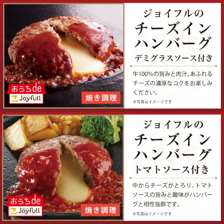 ・ジョイフルのチーズインハンバーグトマトソース付き(ハンバーグ120g・トマトソース35g)×2