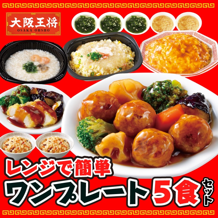 【単品合計6,491円のところ⇒4,400円】大阪王将 レンジで簡単ワンプレート5食セット<北海道・沖縄は別途追加送料>送料無料 冷凍食品 通販 お取り寄せ 中華 仕送り レンチン 簡単調理 備蓄 簡単 惣菜 ギフト