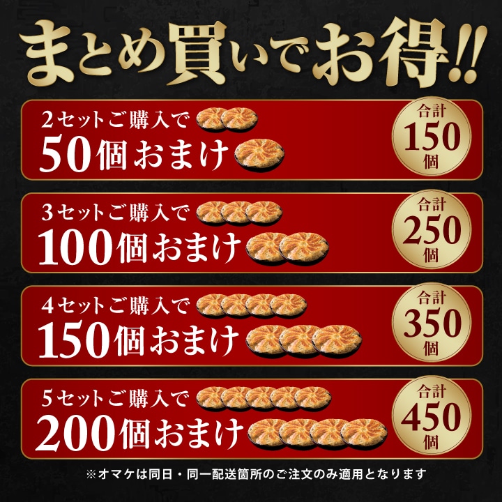 ★5セット購入・・・餃子200個オマケ(餃子合計450個)