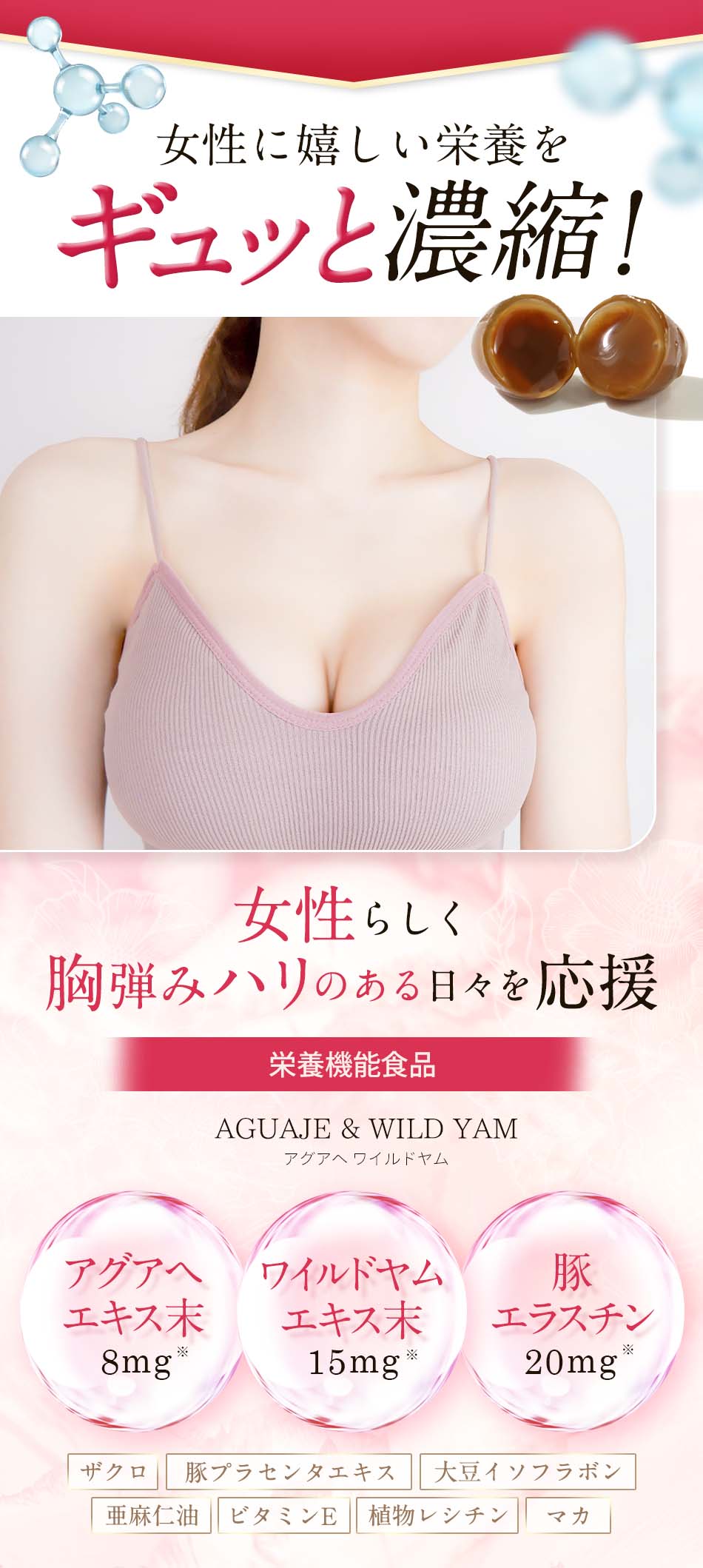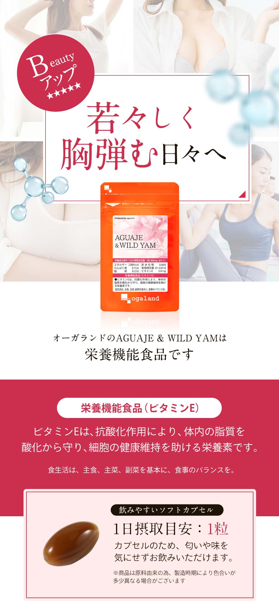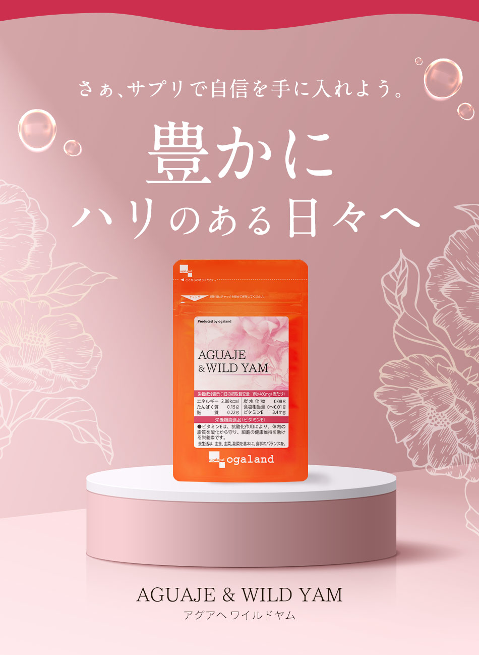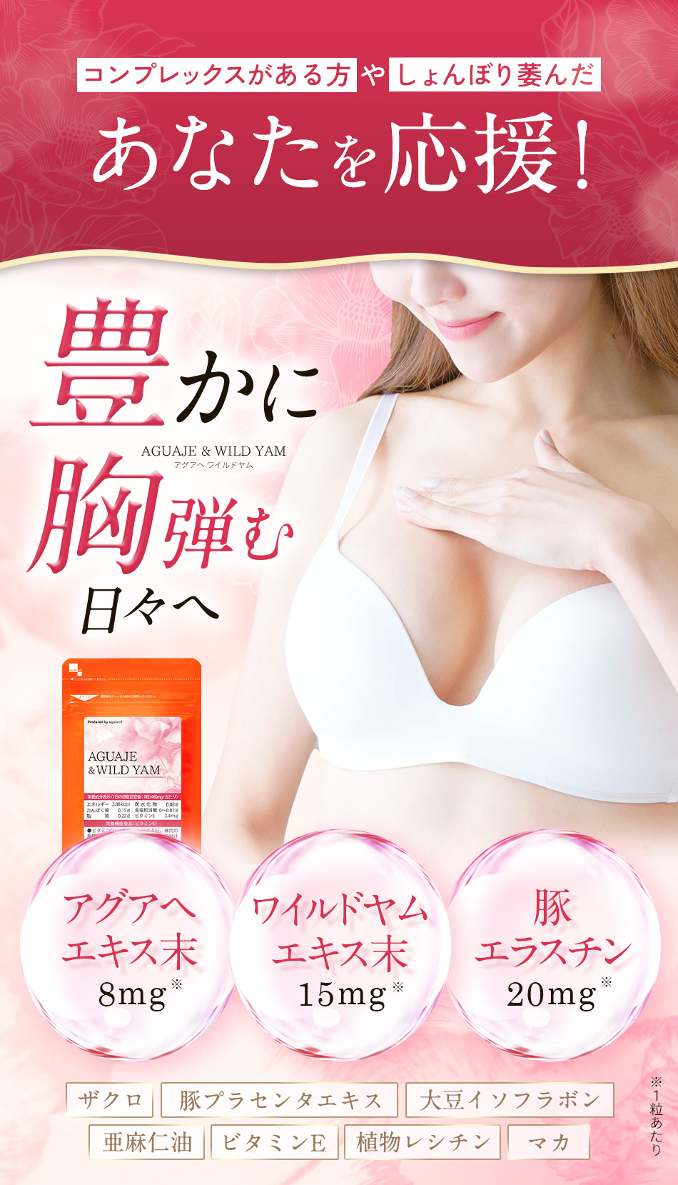 AGUAJE & WILD YAM(3個セット・約3ヶ月分)アアグアヘ サプリ 美容 女性 らしく 胸弾み ハリのある 毎日 ザクロ プラセンタ 大豆イソフラボン 亜麻仁油