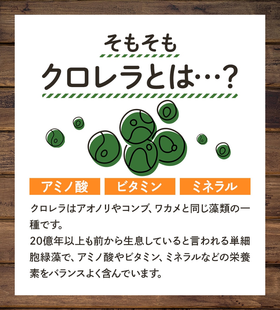 ※クロレラはビタミンKを含んでいますので、ワルファリンを服用されている方は、ご使用に際しましては担当医師にご相談ください。
