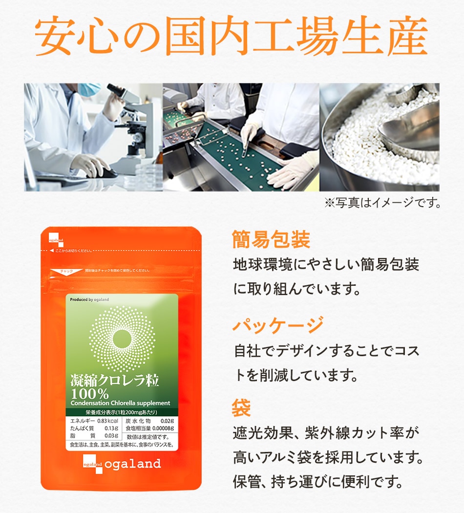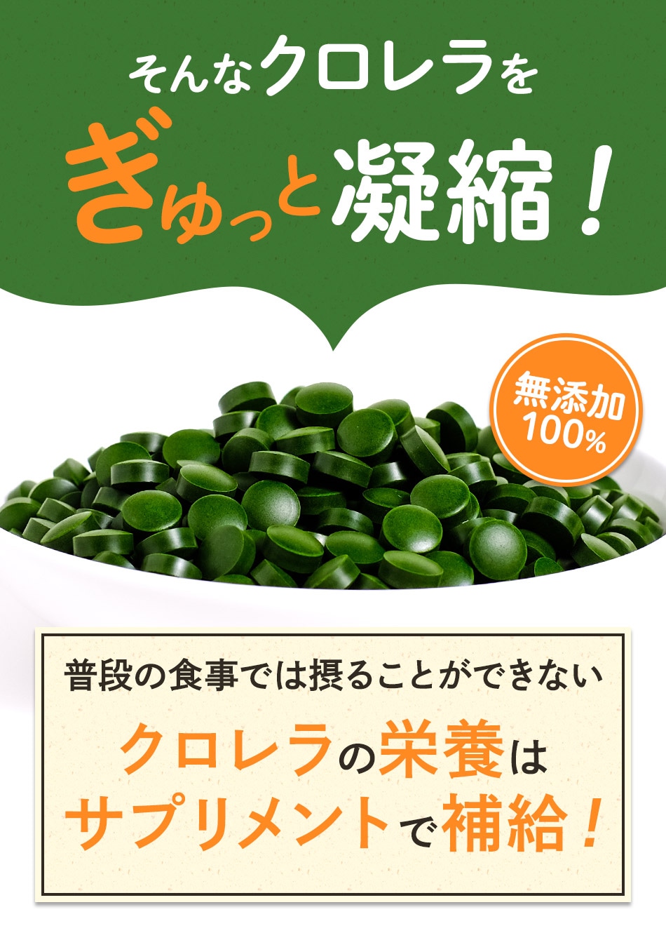 凝縮クロレラ粒100%(約6ヶ月分) 送料無料 サプリメント サプリ クロロフィル 緑黄色野菜 食物繊維 植物性たんぱく質 オーガランド 美容 健康 野菜不足 半年分
