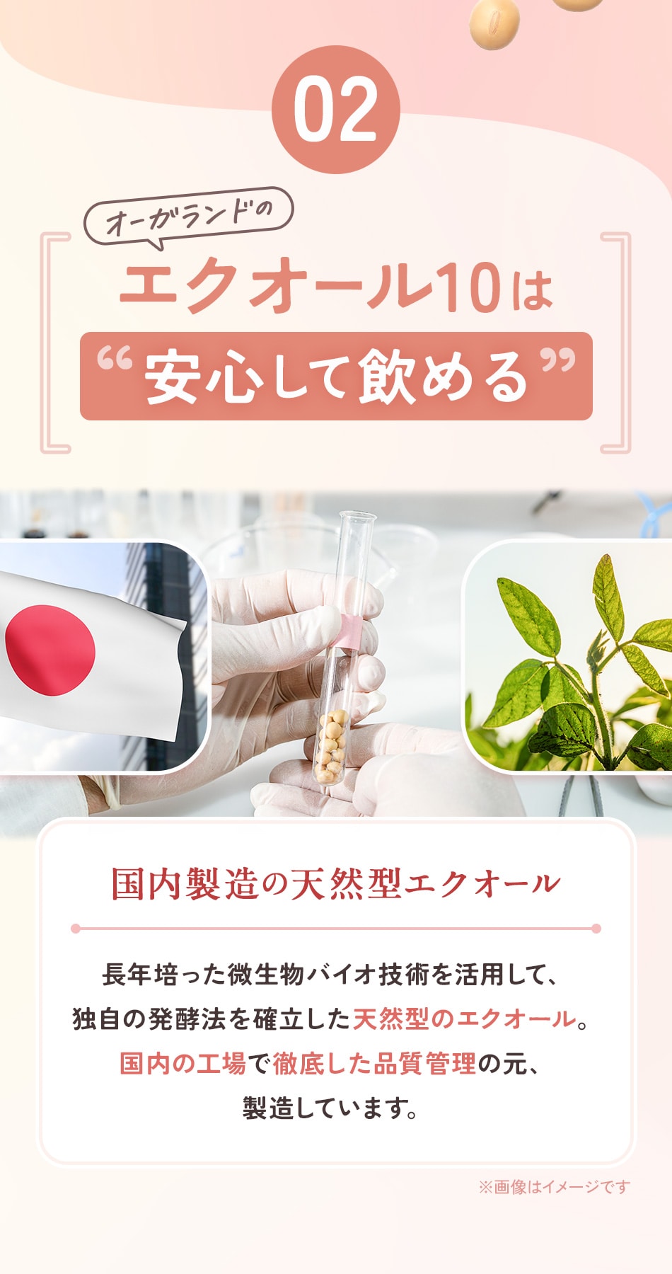 主要原料(1粒あたり):大豆胚芽抽出発酵物 200mg / 乳糖発酵物 10mg