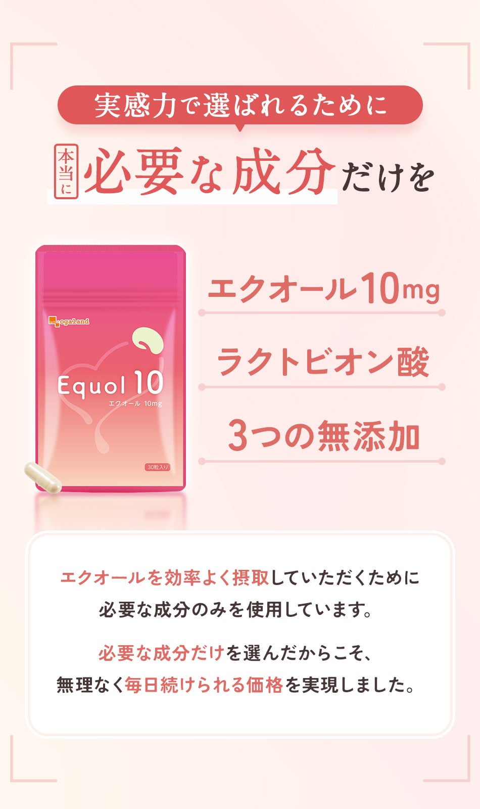 【新発売】エクオール10(6個セット・約6ヶ月分)エクオール サプリ エクオール 10mg ラクトビオン酸 大豆抽出発酵物 国内製造 サプリメント 女性 オーガランド 送料無料 ポイント消費 ポイント消化 半年分 大容量のレビュー