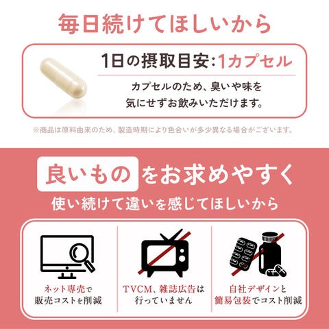 1日に1粒を目安に、水またはぬるま湯などでお召し上がりください。