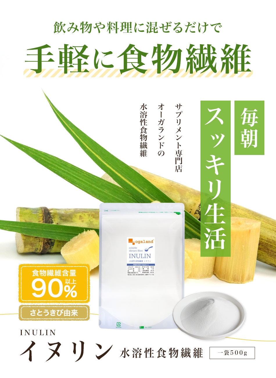 イヌリン(500g)イヌリン 食物繊維 健康 美容 オーガランド 食事で不足 送料無料 大麦 にたくさん含まれる 水溶性食物繊維を パウダーで効率的に摂取 水溶性 食物繊維