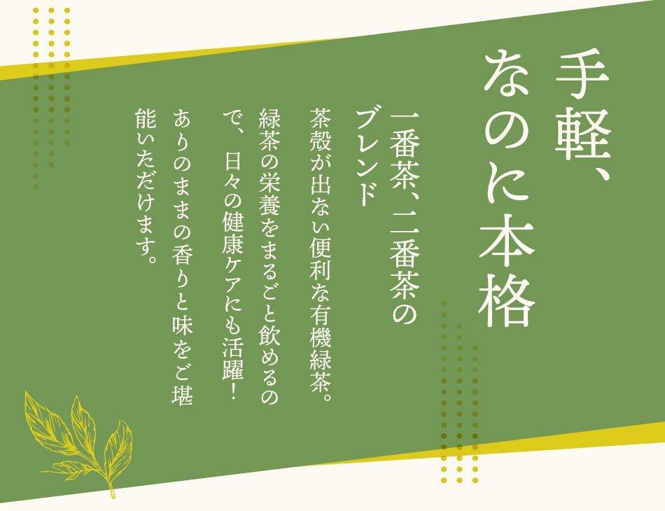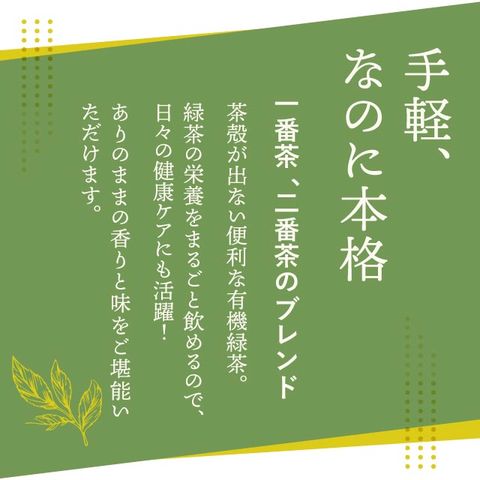 有機緑茶(鹿児島県産) ※商品は原料由来の為、製造時期により色合いが多少異なる場合がございます。