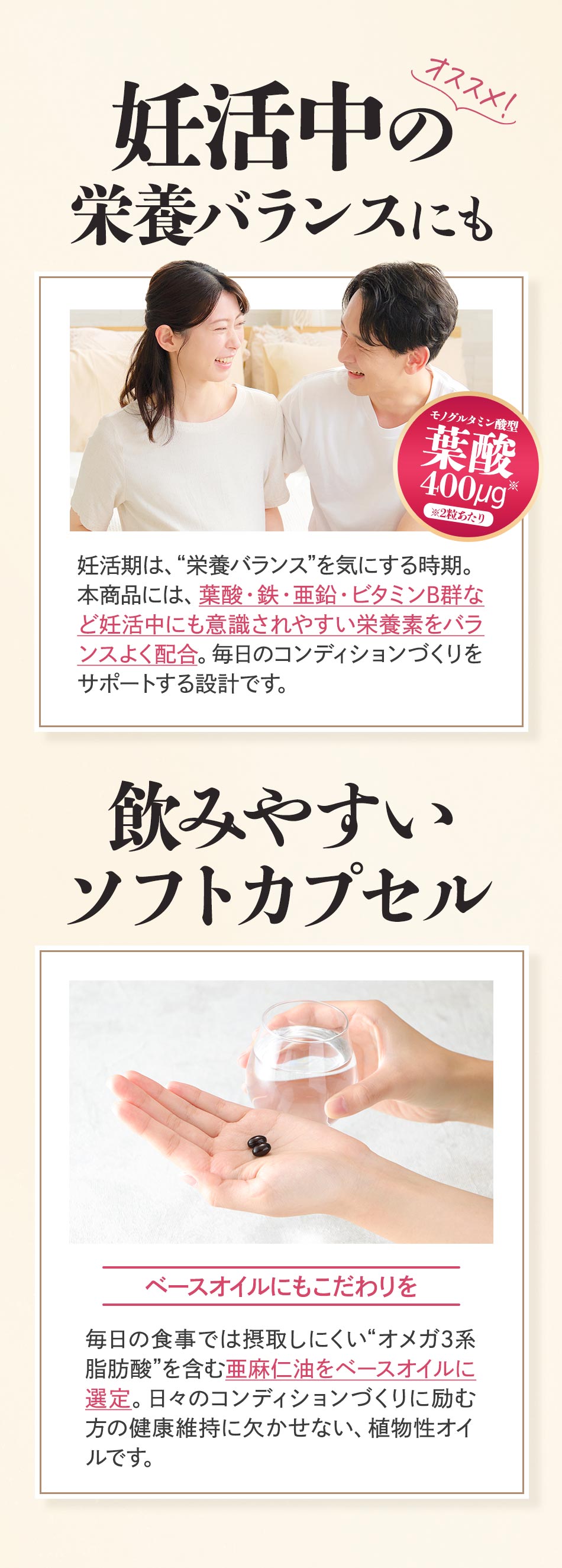 主要原料(1粒あたり):アマニ油 150mg / 還元型コエンザイムQ10 53mg